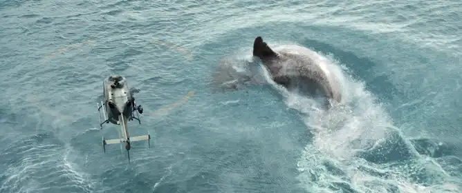 Фильм аккуратно и методично показывает несколько попыток борьбы с монстром. Первые походы в погоню за мегалодоном оказываются неудачными: технологии и оружие кажутся бессильными против такого противника на чужой для людей территории. Авторы сценария показывают, что обычные решения не работают — нужно адаптироваться к шкале угрозы и искать нестандартные способы. Это приводит к ряду напряжённых сцен: погружения, эксплуатация спасательных капсул, манёвры на поверхности и попытки заманить хищника в уязвимое положение. Во время одной из таких операций команда борется одновременно с механическими проблемами аппаратов, массовой паникой и растущей агрессией мегалодона, что делает сцены максимально напряжёнными и динамичными.