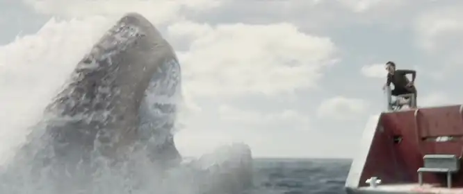Кульминация наступает, когда противостояние с мегалодоном переходит в личную дуэль между Джонасом и чудовищем. Герой вынужден пожертвовать своим комфортом и безопасностью, чтобы обезопасить других. В финале Джонас использует весь спектр своих умений: он рискует жизнью ради спасения людей в подводной аварии, применяет хитрость и смелость, чтобы загнать животное в ограниченное пространство, где его удастся нейтрализовать. Битва сопровождается напряжёнными визуальными эффектами и звуковым давлением, фильм отдаёт должное масштабности монстра, показывая как каждая ошибка потенциально смертельна. Конечный приём, с помощью которого удаётся уничтожить мегалодона, основан на простом принципе: использовать силу противника против него самого, комбинируя человеческую смекалку и готовность к самопожертвованию.